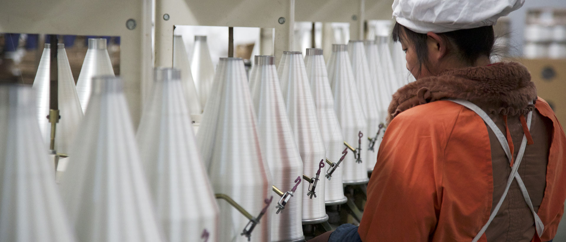 南通文凱化纖有限公司生產(chǎn)的錦綸高強(qiáng)有捻絲(錦綸加捻絲)采用先逬..